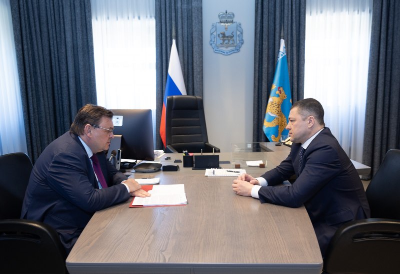 Губернатор Псковской области Михаил Ведерников и министр юстиции РФ Константин Чуйченко провели рабочую встречу, на которой рассмотрели вопросы взаимодействия региональных органов власти с Минюстом России и его территориальными подразделениями.
