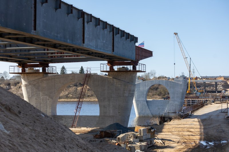 В Псковской области возводят мост через реку Великую — ключевой элемент Северного обхода. Строители используют технологию надвижки, опробованную на Крымском мосту.