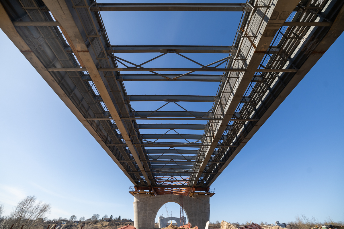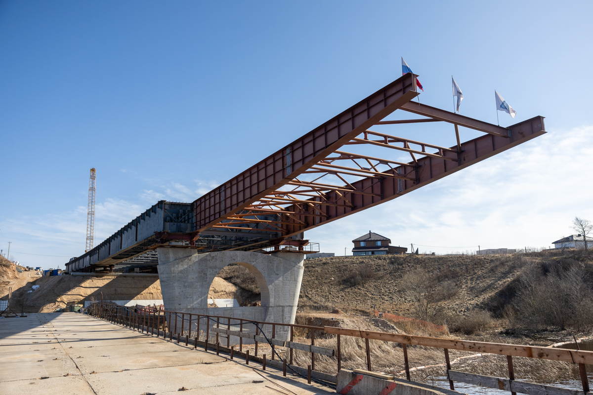 После завершения надвижки пролётного строения на крайнюю опору в деревне Родине строители приступят к опусканию конструкции на проектные отметки, устройству железобетонной плиты проезжей части, обустройству подходов к мосту, а также монтажу инженерных коммуникаций и систем освещения.