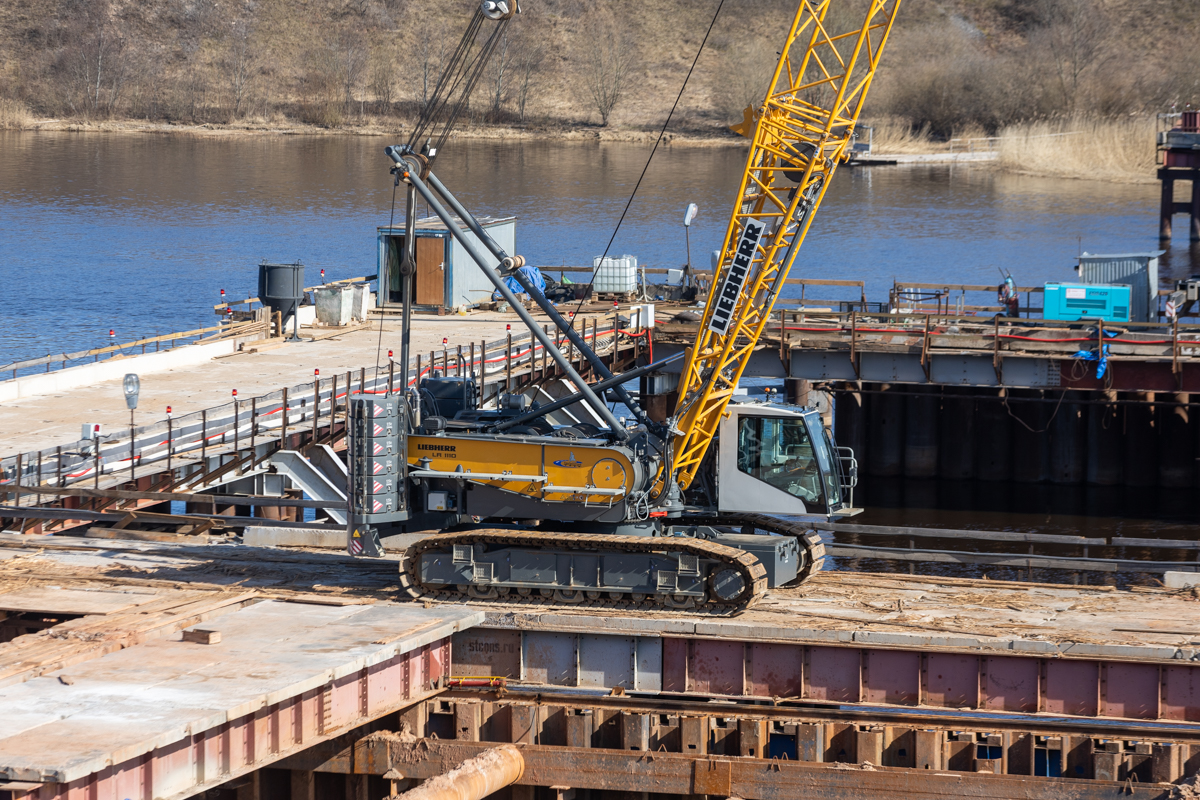 Возведение опор моста через Великую в Пскове продолжается